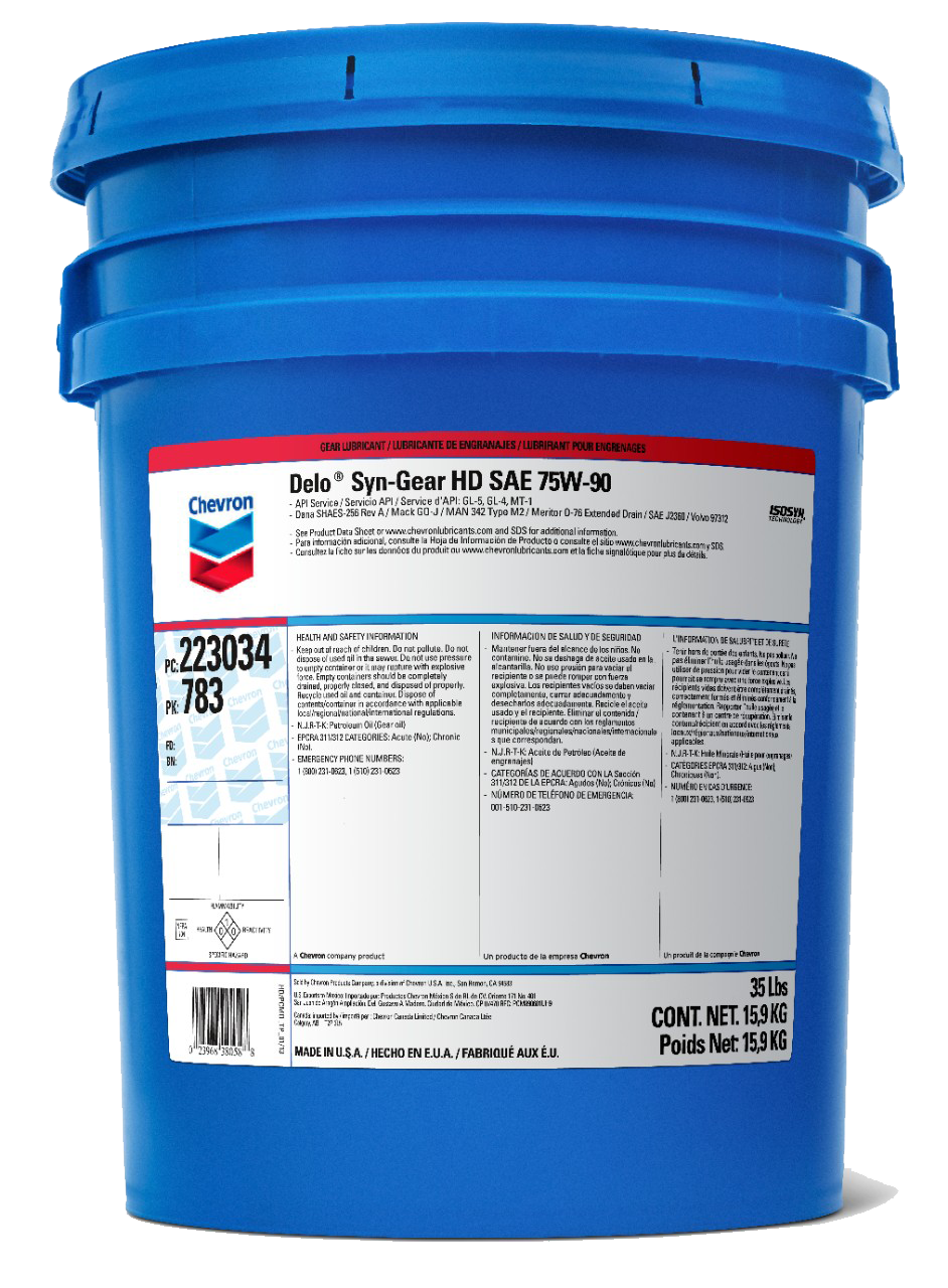 Delo Syn-Gear HD gear lubricant is a heavy duty, extreme pressure, multigrade automotive gear lubricant.